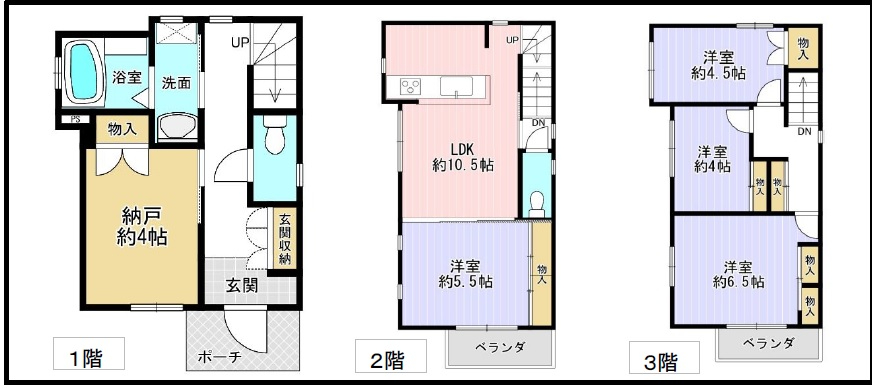 ◆平成8年建築の3階建、4LDK+納戸の間取り!