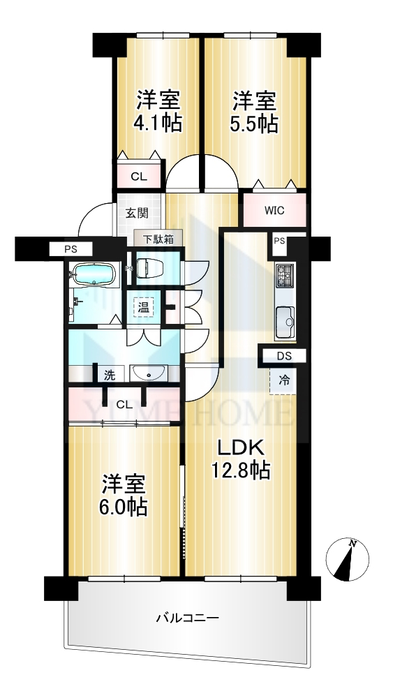 洋 6帖 / 洋 5.5帖 / 洋 4.1帖 / LDK 12.8帖