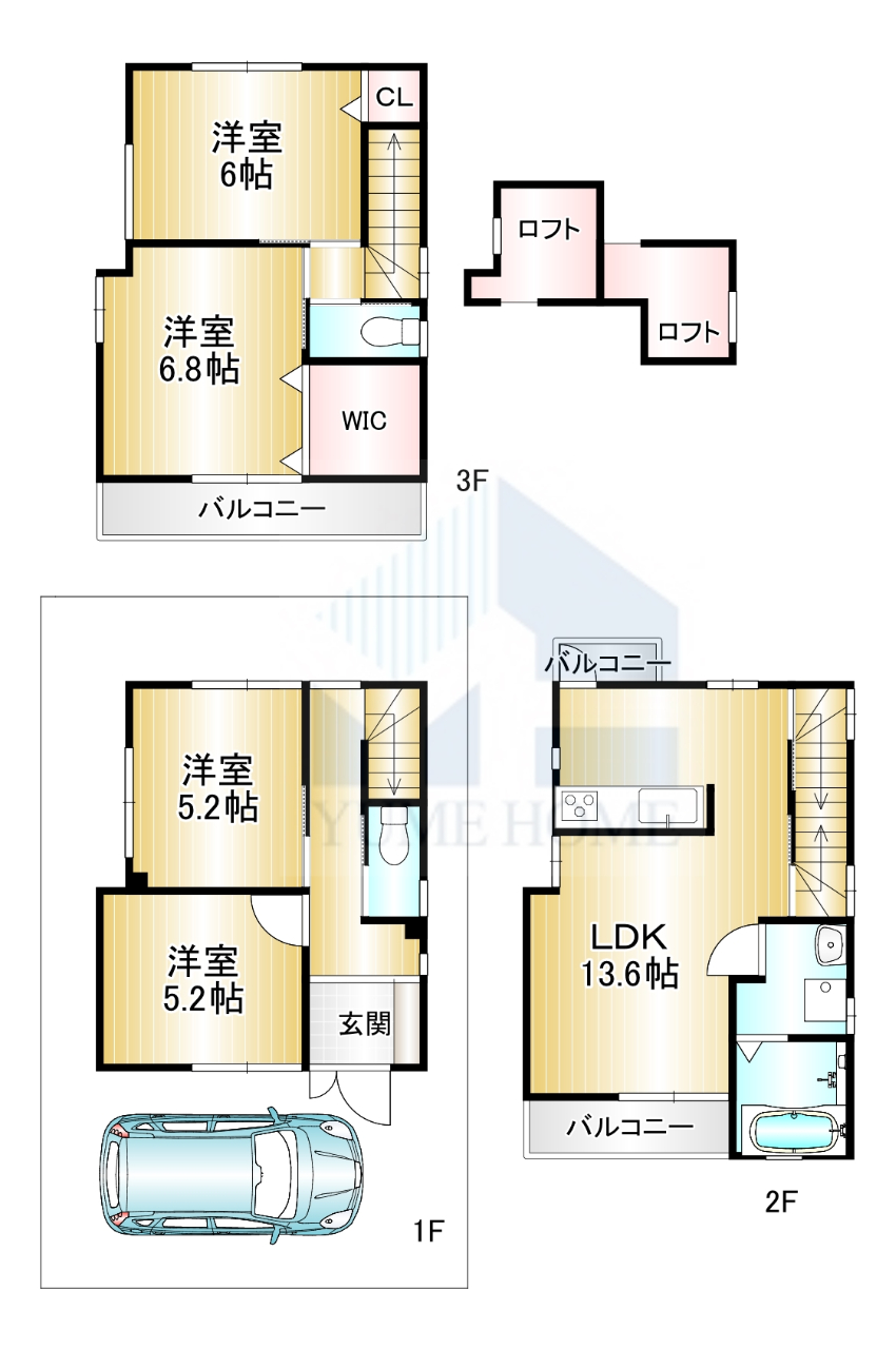 ◆建物面積 92.50㎡、木造3階建て、4LDKの間取り