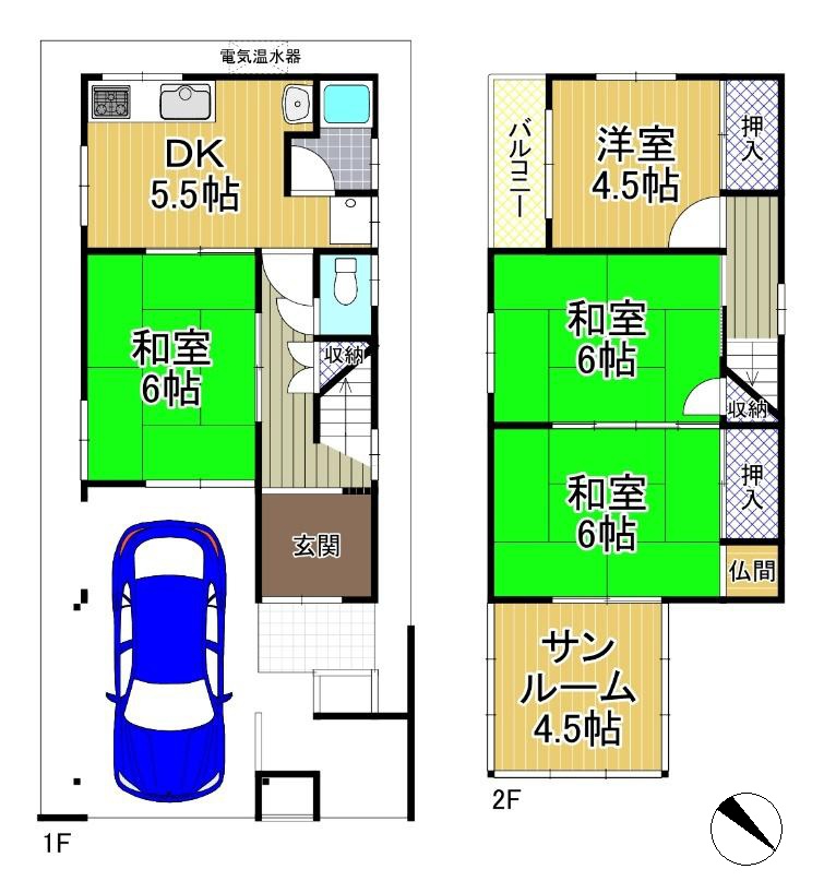◆建物面積 61.55㎡、木造2階建て、4DKの間取り