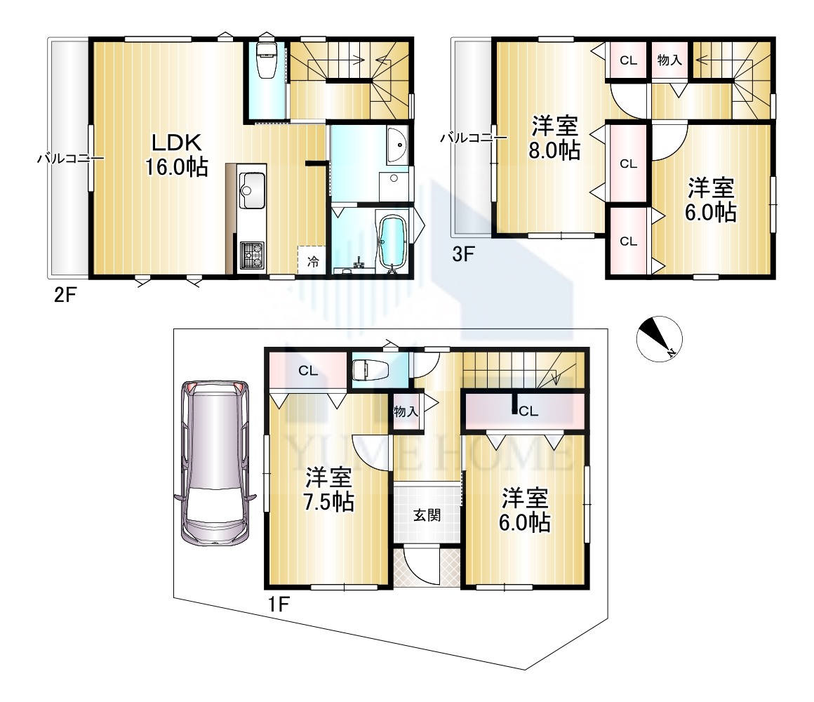 ◆居室は全て洋室、各居室収納スペース付!全居室6帖以上の広さがありゆったり☺