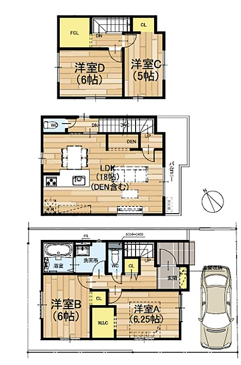 ◆建物面積 104.33㎡、木造3階建て、4LDKの間取り