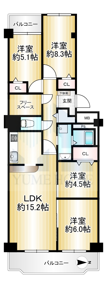 メインバルコニーは東向きにつき朝日がたっぷり降り注ぎます!
