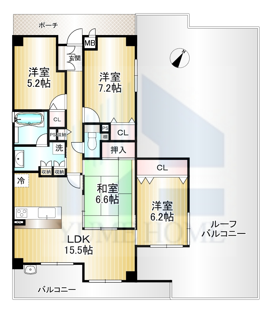 さらに、約50.69㎡の広さのルーフバルコニー(東向き)付き!