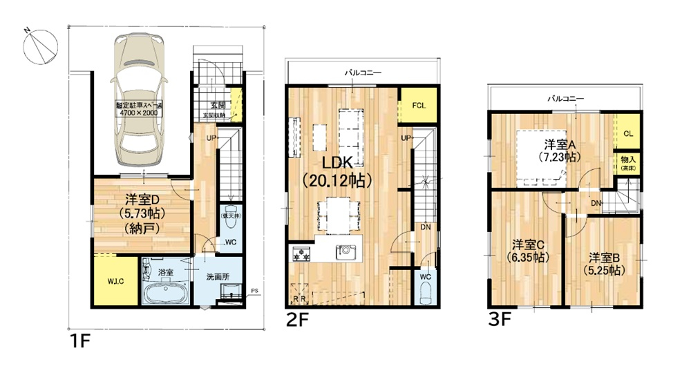 ◆バルコニーは2F、3Fに☺